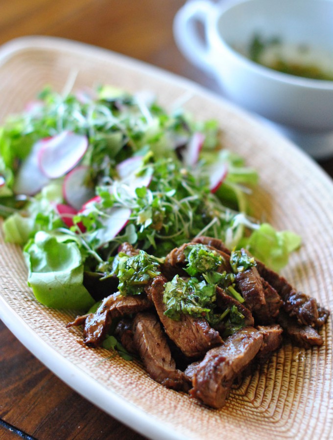 No Marinade Steak Salad with Teriyaki Cilantro Dressing